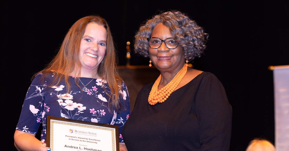 Thirteen Buffalo State faculty and staff members were recognized with President’s and Chancellor’s Awards for Excellence and a SUNY Distinguished Faculty rank for their extraordinary efforts on behalf of the university, the State University of New York, and the greater community during the 12th annual Faculty and Staff Recognition Ceremony on October 12, 2023.