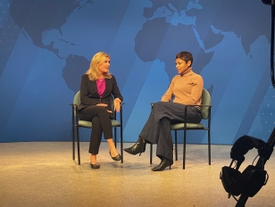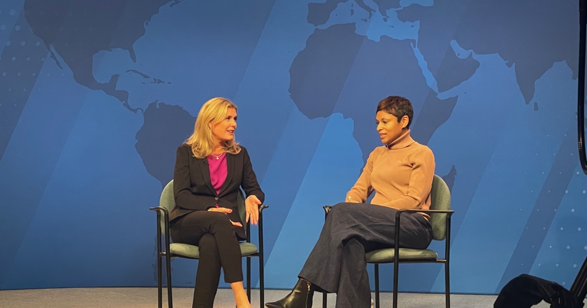 Pictured: Ellen Notarius (left) interviews Jericka Duncan in Buffalo State's television studio.