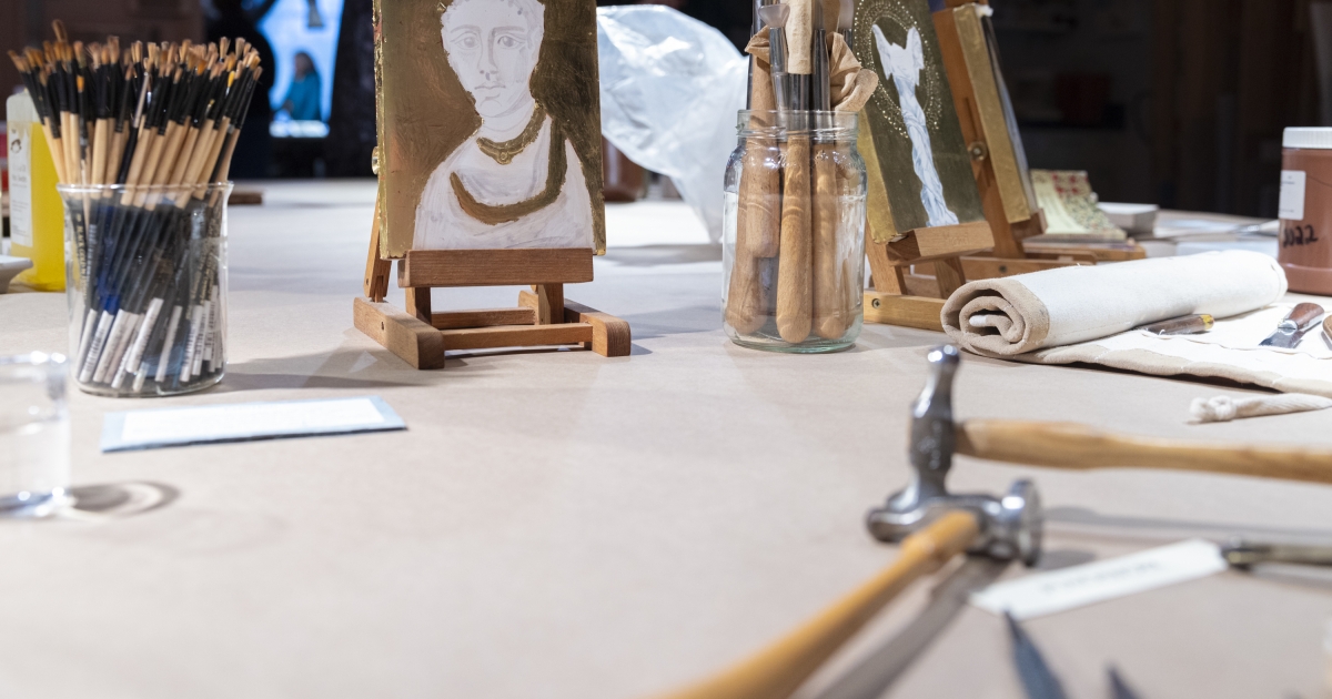 A table with art conservation materials